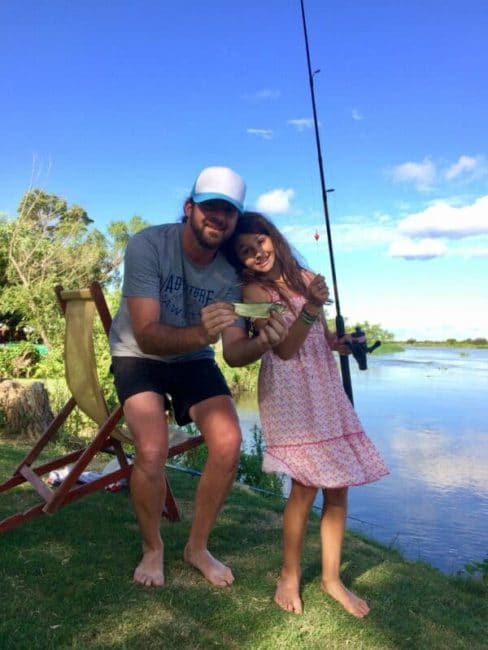 Le frère de Baptou est un passionné de pêche. La pêche en Argentine est apparement quelque chose de réputé. Nous avons donc loué une voiture pour partir à l’aventure. Arrivés là-bas, nous avions des cabanes qui donnaient sur la rivière où nous allions pêcher le lendemain. Cabane partagée avec Marion et Clovis bien sûr, mais aussi Dario, Yannick et deux des nièces de Dario. C’est ça l’Argentine, on partage tout. Tout le monde boit dans le même verre, à la même « bombilla » (paille) de maté. Ce côté convivial est très agréable et fait directement penser qu’on fait juste partie d’un ensemble.