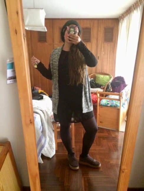On doit perdre son style parce qu’on voyage ? Non ! C’est vrai que cela pourrait être pratique, mais au final, être bien dans ces vêtements est l’important. Bien entendu, c’est comme dans la vie de tous les jours, les dimanches, on a pas envie de s’habiller et on traîne en pyjama, là, il y a des moments semblables. Mais, avoir toute la panoplie Décathlon parce qu’on voyage, je suis désolée, je dis non.