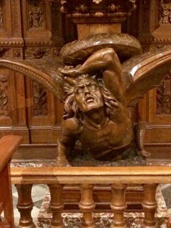 On marche jusqu’au point de vue pour voir ces impressionnants volcans. Puis, vient le moment des visites. Nous avons eu la chance de faire la visite guidée de la cathédrale avec un guide génial. Je pense que ça joue beaucoup. Nous avons pu découvrir le diable qui se trouve à l’intérieur. Diable qui a été réalisé à Lyon ! Les gens disent même que la nuit, le diable se balade dans la cathédrale. La nuit donc, personne n’approche de trop près ce grand bâtiment.