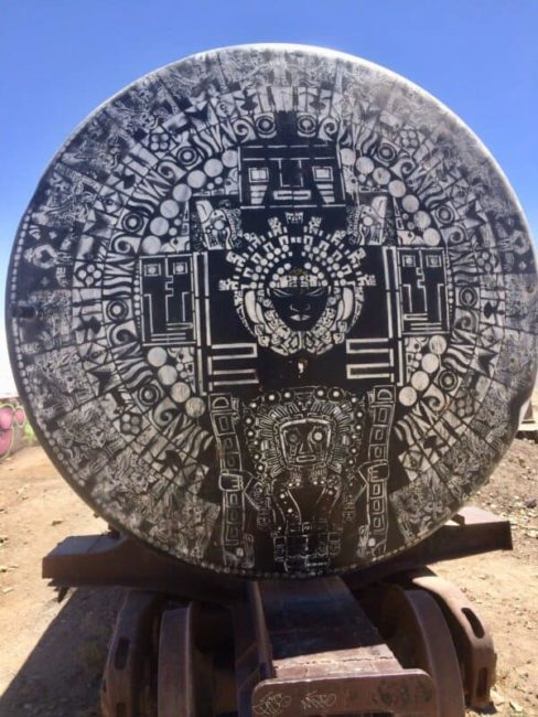 On a rendez vous à 10 heures pour partir. On part en 4/4 avec un couple Franco-Mexicain, une Suisse et une Australienne. Le premier arrêt est un cimetière de trains. C’est rigolo, mais je suis tellement impatiente de voir le Salar que je ne lui accorde pas tant d’importance. Ah si, il y a un tag sur un train qui m’impressionne, après ce que je vois surtout, ce sont des dizaines de touristes qui font des millions de photos. Grimpant sur les trains tel des chimpanzés, et hop : première chute ! On observe tous les gens en train de poser avec un sourire un peu moqueur. C’est reparti, cette fois, on part pour le Salar, le vrai, et on va y passer la journée entière.