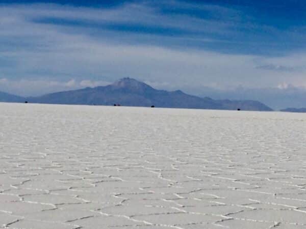On y arrive, on roule sur du sel. Un désert de sel, c’est stupéfiant. Il y a des trous d’eau, on a l’impression que l’eau bout dans ces trous. Elles remontent de loin, il y a plus de 8 km de sel sous nos pieds. On mange ensuite dans une cantine en sel, eh oui, c’est le thème du jour !