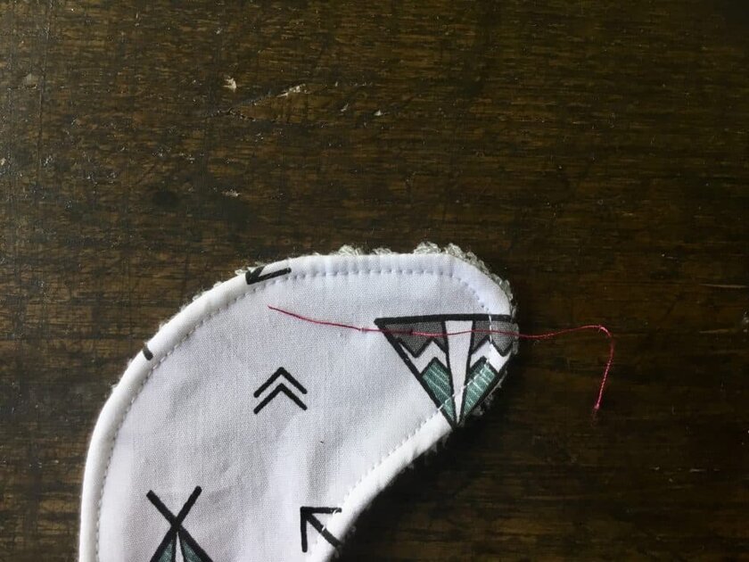 Astuce couture : coudre à 1 cm et surpiquer à 0,5 cm permet de refermer le bavoir grâce à la surpiqûre !