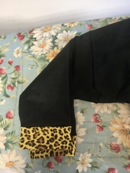 J’ajoute ensuite la coupe des manches. Voici la photo du patron des manches.