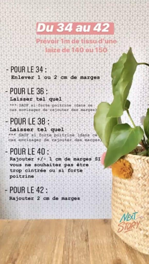 Pour avoir une taille 34, il faut enlever 1 cm tout le tour du patron !
