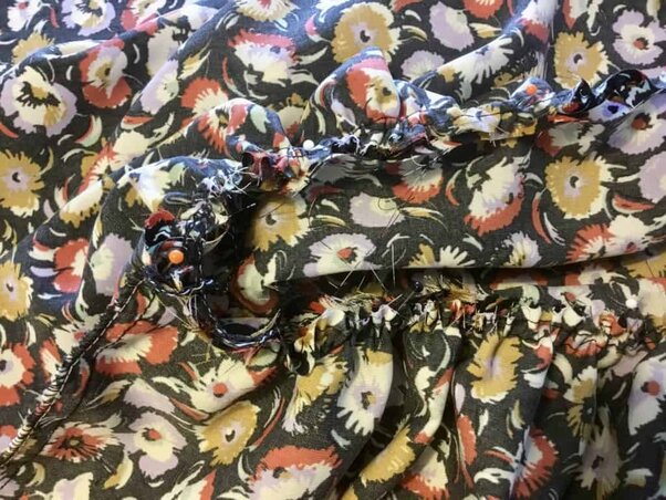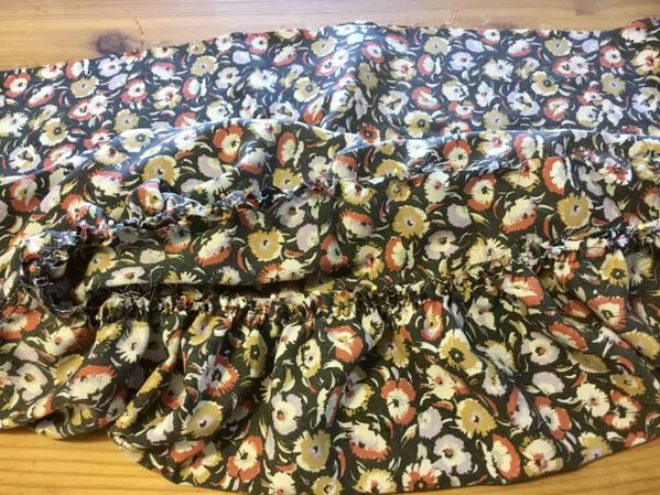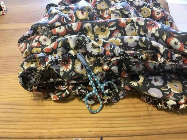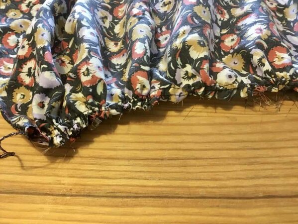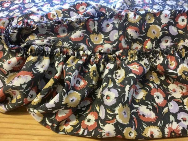 Une fois ces deux coutures effectuées, on va tirer sur les fils pour former vos fronces.