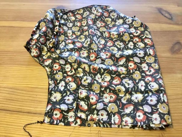 Maintenant, il ne vous reste plus qu’a ourlet les manches. Vous pouvez aussi mettre un biais ou un volant si vous voulez plus de fantaisie !