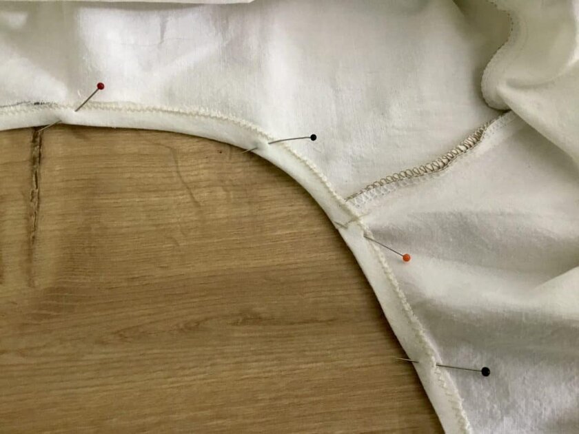 Coudre entre 0,5 et 0.8 du bord pour maintenir le rempli de l’encolure.