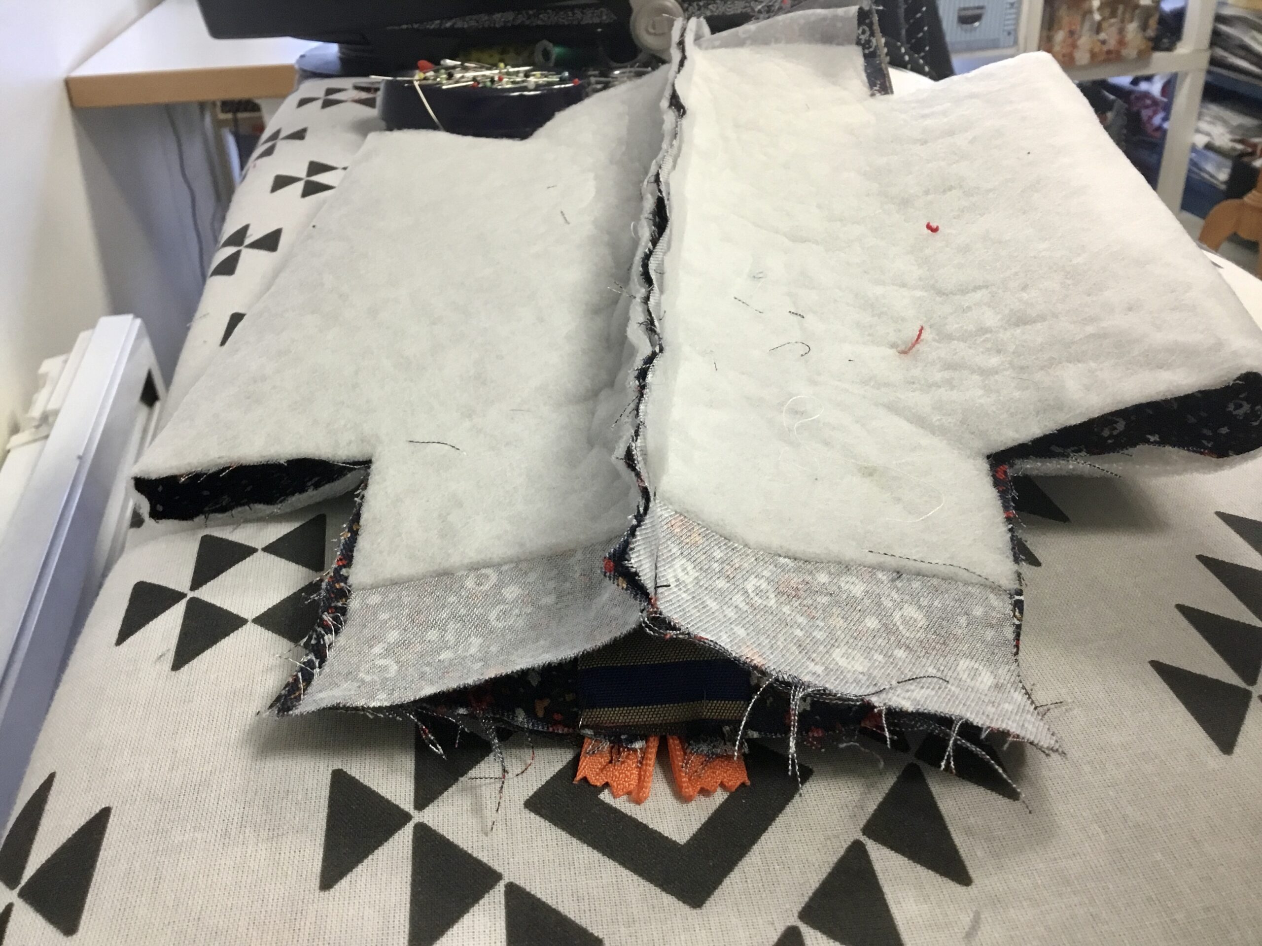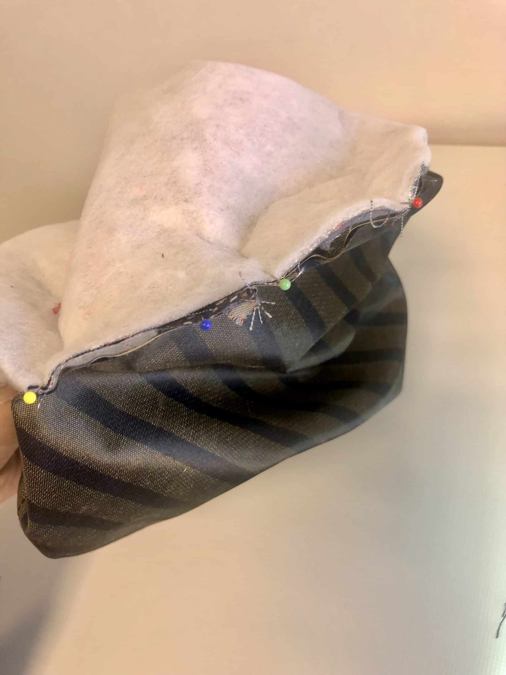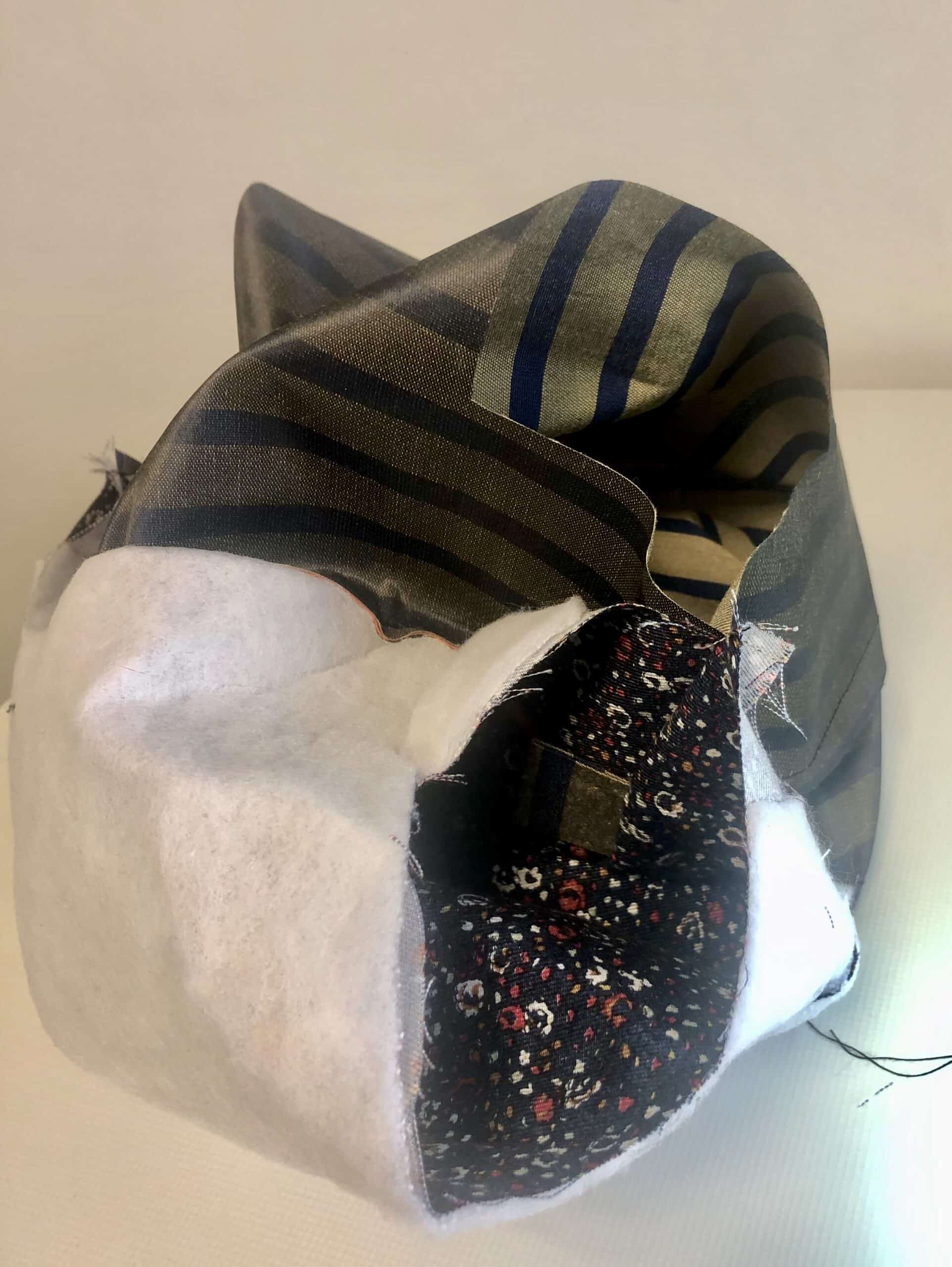 L’heure est venue de retourner notre trousse et de découvrir si on a assemblé les bonnes choses ensemble ou si on a créé une œuvre contemporaine (c’est bien aussi cela dit !). Une fois notre œuvre découverte, deux choix, on vient refermer le trou à la main ou en faire une petite surpiqûre, sauf si c’est une œuvre, on peut l’amidonner et l’exposer, bah oui après tout, on est un peu des artistes non ?