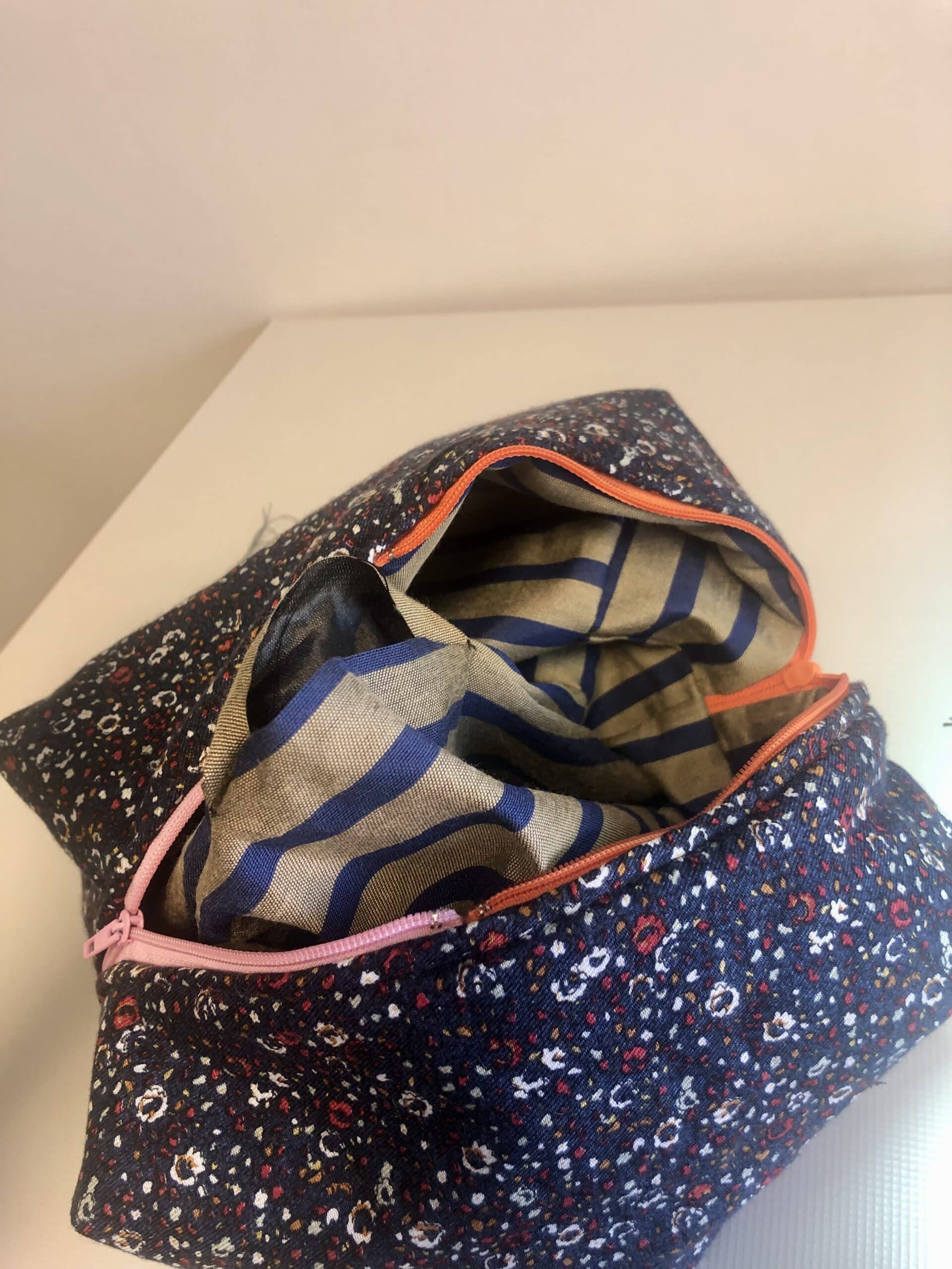 Mais oui, on en a toute besoin, et ça, tout le temps, pour un petit déplacement, pour les vacances, ou juste comme pochette fourre tout ! Alors j’avais envie de trouver la trousse de toilette idéale pour moi, alors que j’espère qu’il te plaira !