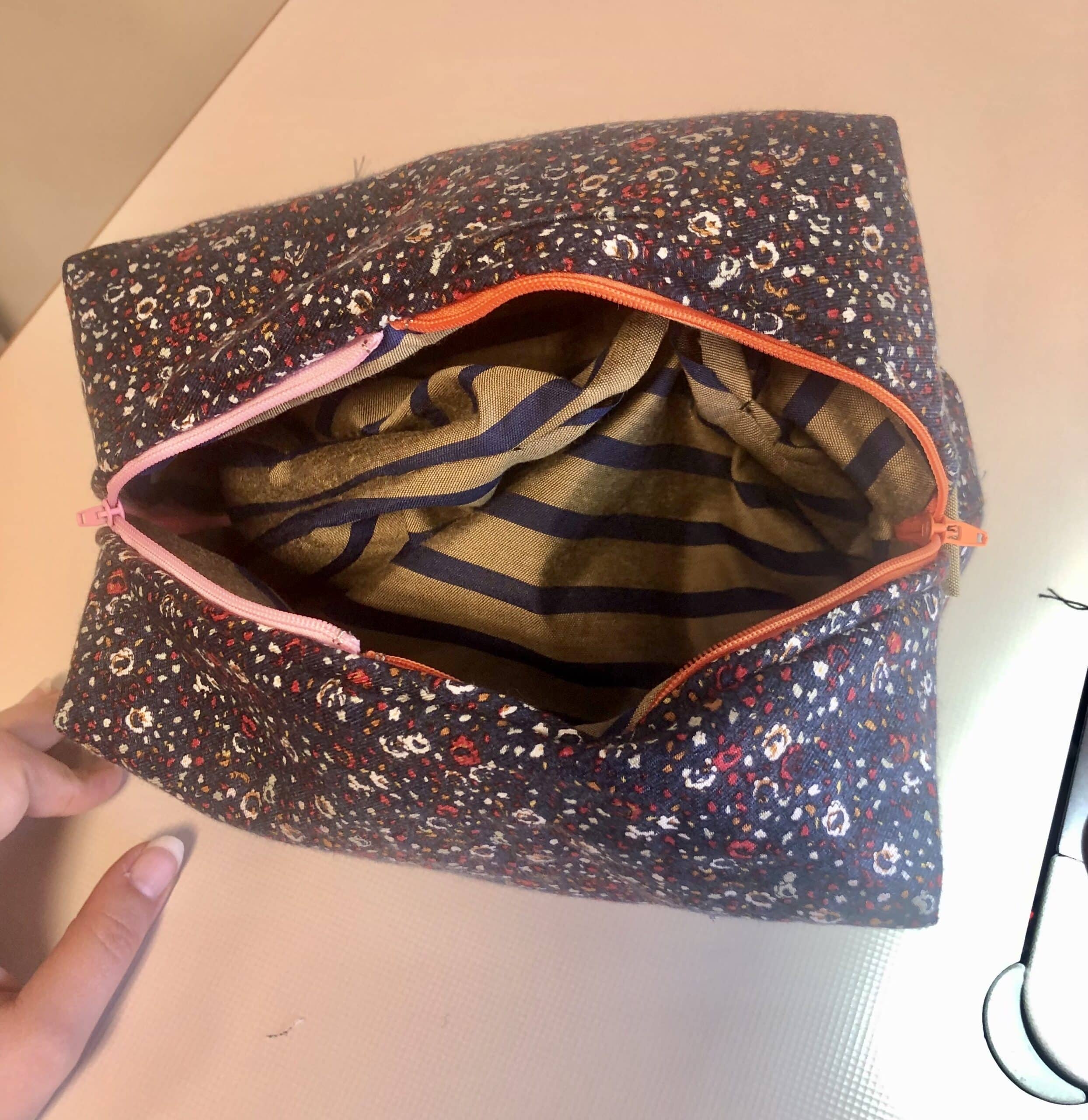 Une fois que cette couture est faite, on va surpiquer la trousse, rien de très compliqué mais il faut aller droit, parce qu’une surpiqûre est une couture visible donc on s’applique (enfin on essaie!).