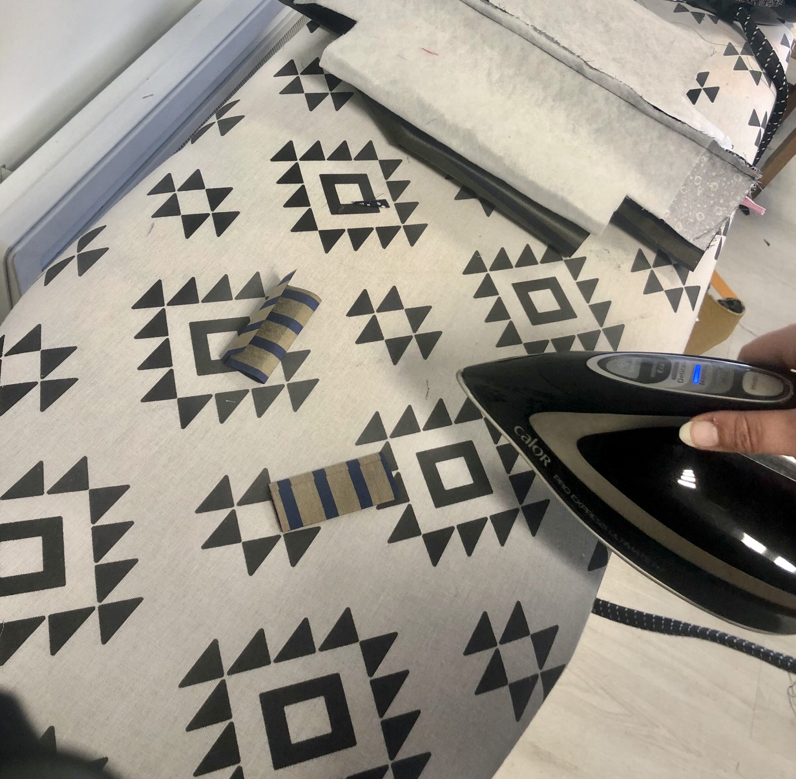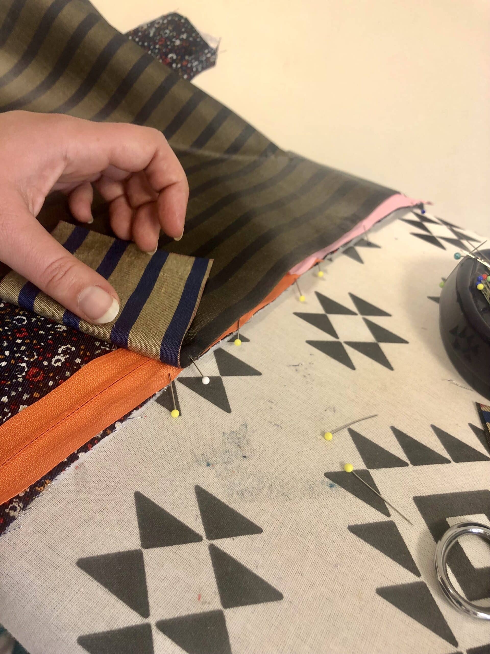 On épingle les tirettes aux extrémités de la fermeture à glissière.