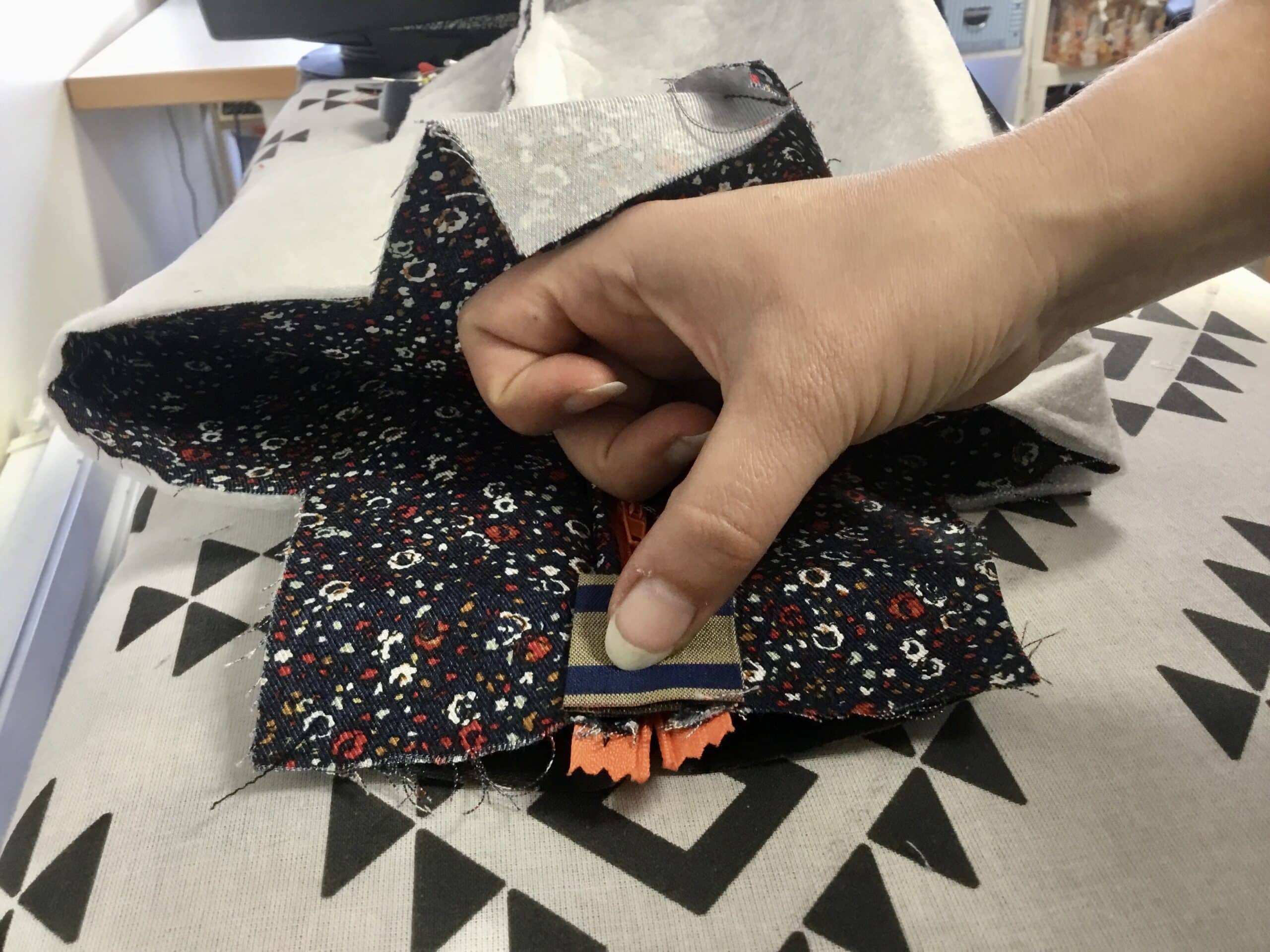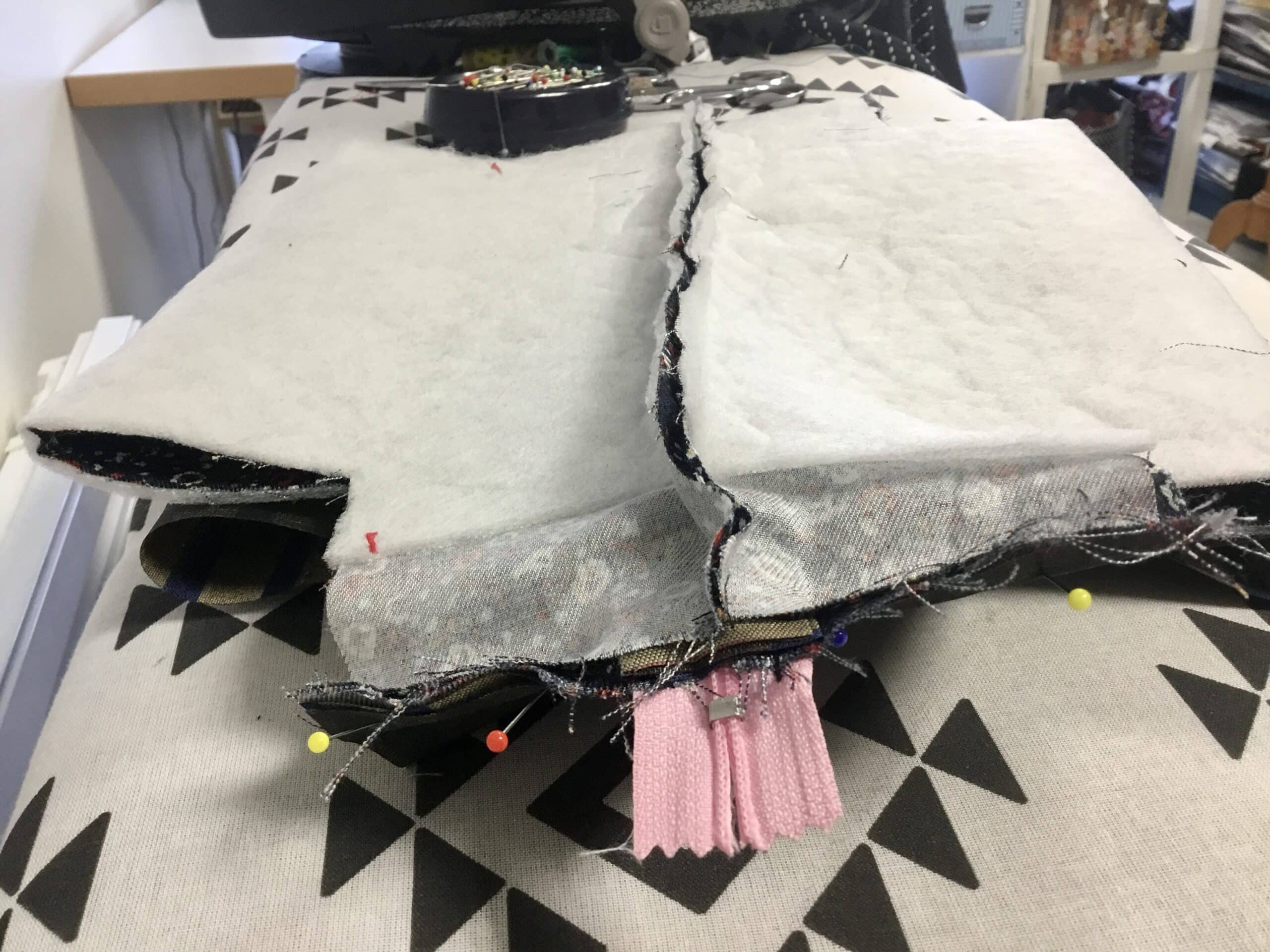 La couture que vous venez de faire est essentielle, elle va venir se positionner contre la fermeture à glissière, d’un côté et de l’autre.