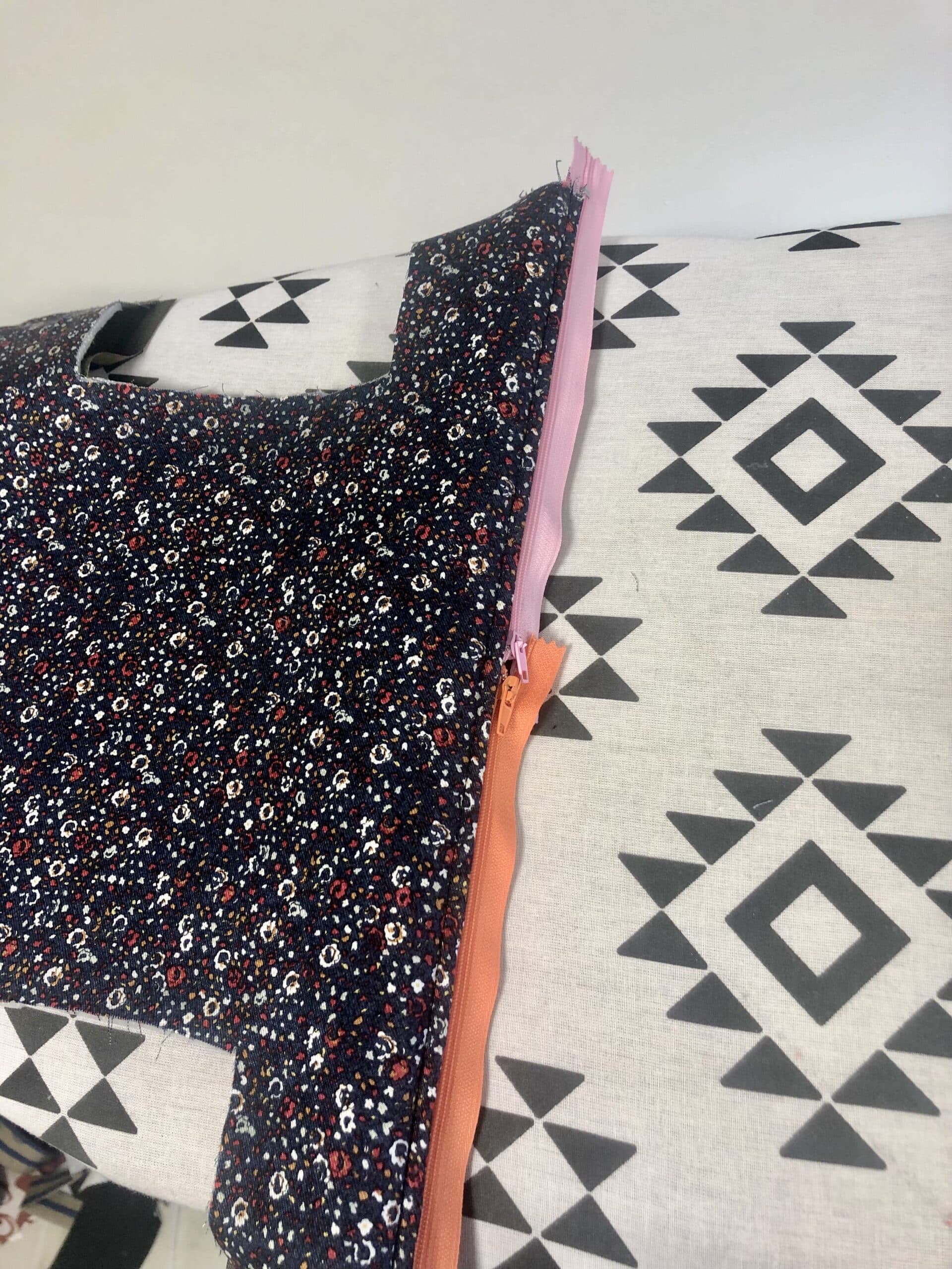 C’est parti pour la couture, je sais que c’est votre moment préféré (c’est notre moment préféré à toutes !), une fois n’est pas coutume nous allons commencer par coudre la fermeture à glissière.