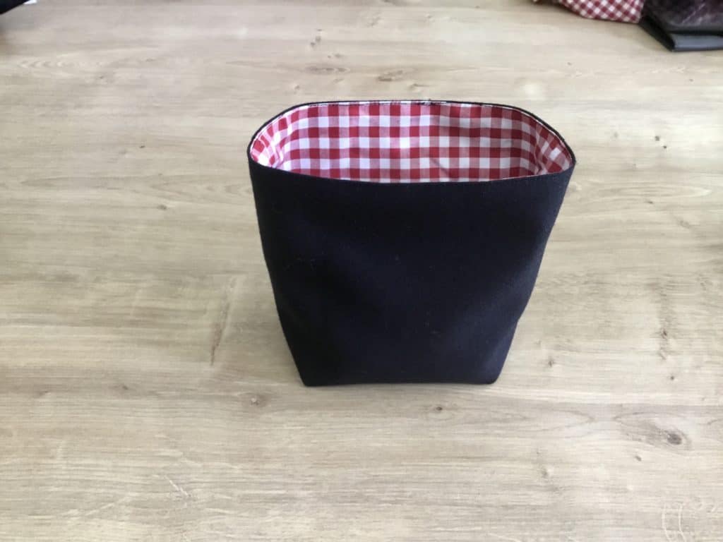 J’aime bien faire un revers, c’est justement pour ça que j’ai choisi le vichy en doublure, j’aime voir l’intérieur à l’extérieur. C’est vous qui choisissez la hauteur, selon aussi ce que vous voulez mettre dedans. Amusez-vous !